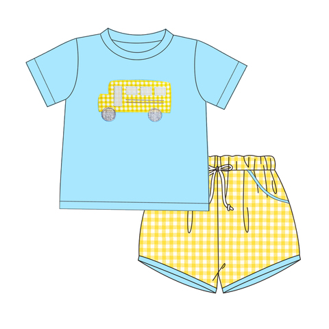 लड़कों के लिए सर्वश्रेष्ठ डिज़ाइन के बच्चों के कपड़े, एप्लिक स्कूल बस छोटे लड़कों के सेट