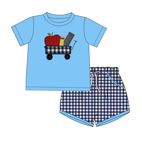 Boyis बुटीक लड़कों बच्चों को गर्मी के कपड़े सेट पेंसिल कढ़ाई करने के लिए वापस स्कूल बच्चा लड़कों कपड़े