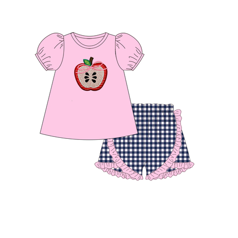 बॉयज़ 2024 स्कूल में वापस नए डिज़ाइन किए गए अनुकूलित बुटीक एप्पल एप्लिक लड़कियों के सेसरकर कपड़े लड़कियों की पोशाक